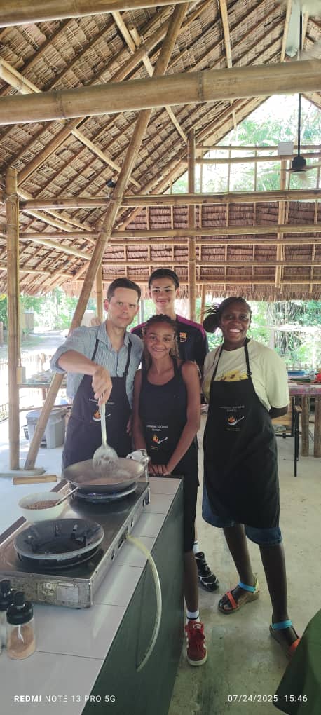 We were also joined by Laetitia and Jennifer, two vibrant guests from Switzerland staying at the Rainforest Retreat. Together, the group rolled up their sleeves for some hands-on cooking, while others chose to observe, taste, and cheer everyone on.